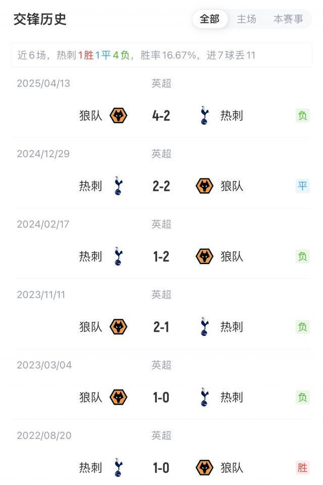 热刺杀手热刺与狼队交手已连续6场不胜,狼队5连败后送其首分