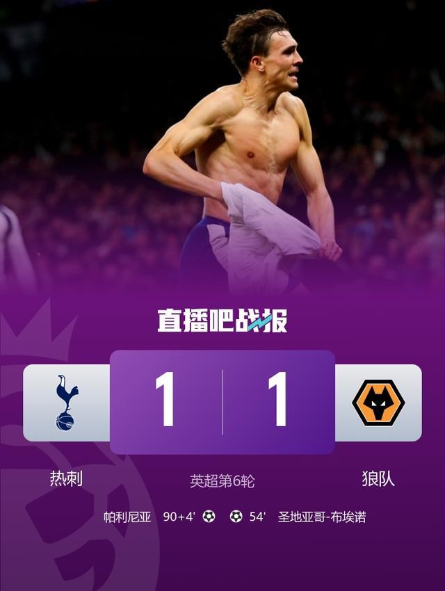 09月28日讯 英超第6轮,热刺补时阶段惊现扳平狼队,目前热刺与狼队交手已连续6场不胜,并且在狼队5连败后送其本赛季首个积分。