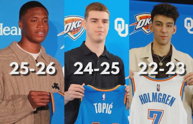再往前看,2022年选秀大会结束后,霍姆格伦脚踝严重受伤,也使新秀赛季提前报销。以前都是76人的新秀提前报销,现在变成了雷霆。索伯毕竟还是一年级,托皮奇的前景不容乐观:2026-27赛季和2027-28赛季都是球队选项。