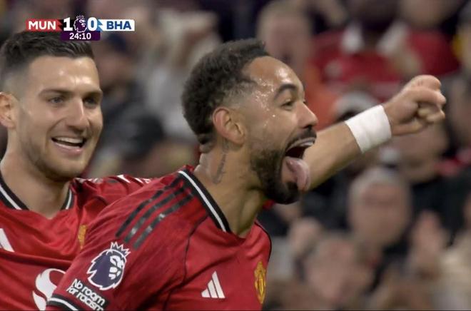 对阵布莱顿破门,马特乌斯库尼亚攻入曼联生涯首球