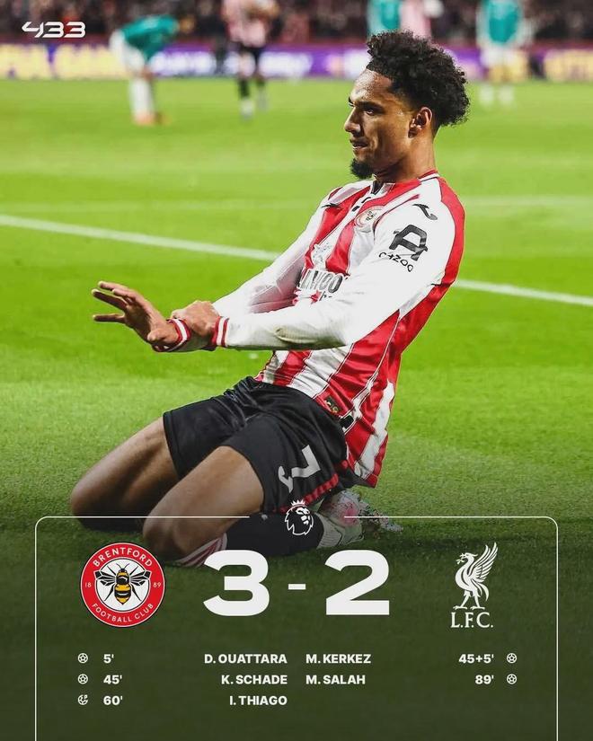 布伦特福德3-2 利物浦