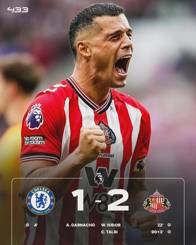 英超第9轮,切尔西主场对阵升班马桑德兰。开场仅4分钟,加纳乔打进一球,同时也是斩获蓝军生涯首球。