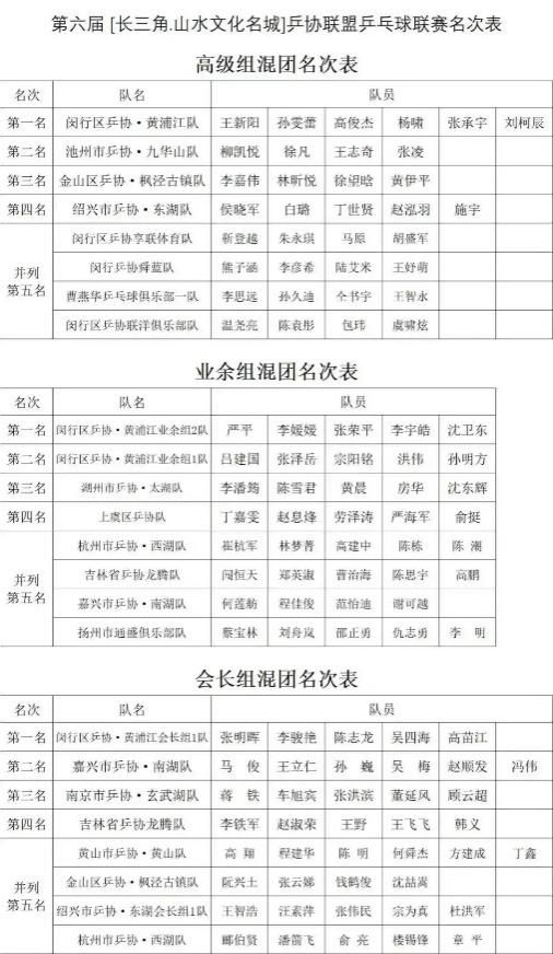 第六届【长三角・山水文化名城】乒协联盟乒乓球联赛的圆满举办,不仅展现了长三角地区乒乓球运动的蓬勃发展,更以乒乓为纽带,增进了中外文化交流与友谊。期待未来赛事继续为长三角乃至国际乒乓爱好者搭建交流平台,让 “以球会友、文旅融合” 的理念持续绽放光彩。