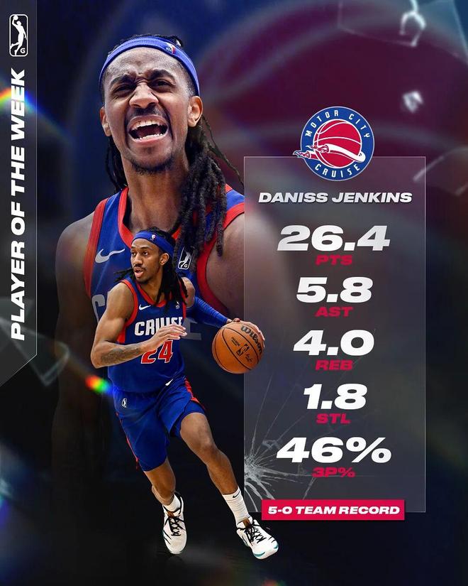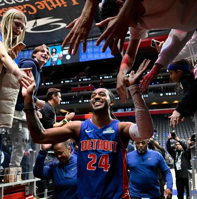 詹金斯是2024届的落选秀,新秀赛季一共只在活塞打了7场比赛,场均上场3分钟,得到1分。本赛季,他拿的只是一份薪水8.53万美元的双向合同,但,过去5场他的表现仿佛一个巨星。主要是活塞热度不够高,这要是纽约打出的这种表现,詹金斯说不定能掀起又一阵“林疯狂”——这个还真有数据支持,詹金斯是2012年林书豪之后第一个生涯前三场首发全部赢球且得分18+的球员。