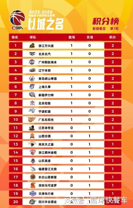 - CBA | CBA首轮后最新排名出炉!广厦第1广东第10辽宁居第4四川垫底